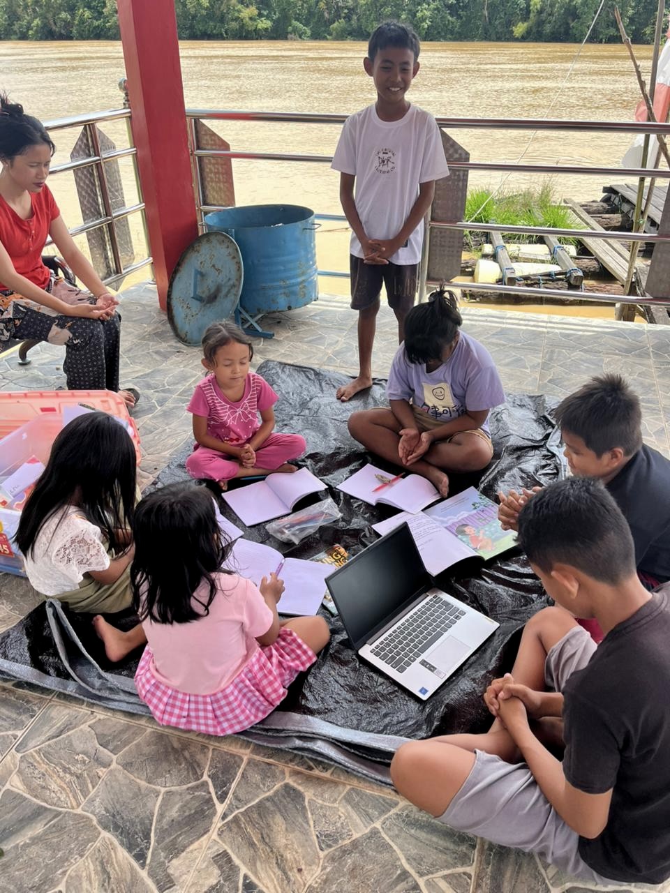 For almost a week we were working very hard to get the books and assets secured. We prepared big boats to take the books etc in case rain didn’t stop falling. Nikita (our music and dance teacher) and her parents were on standby day and night, to make sure all was safeShe has been really amazing and her family is very helpful.